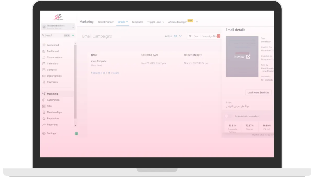 "يُمكنك إدارة بيانات عملائك وإطلاق حملات البريد الإلكتروني الخاصة بك للترويج لمنتجاتك"