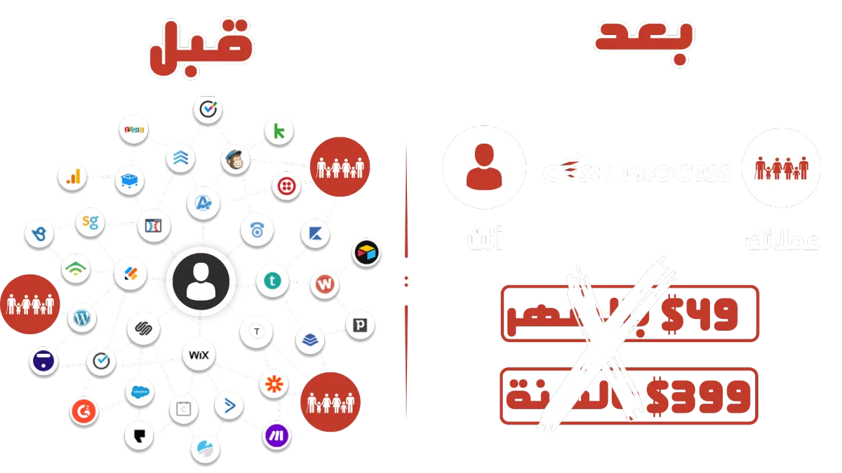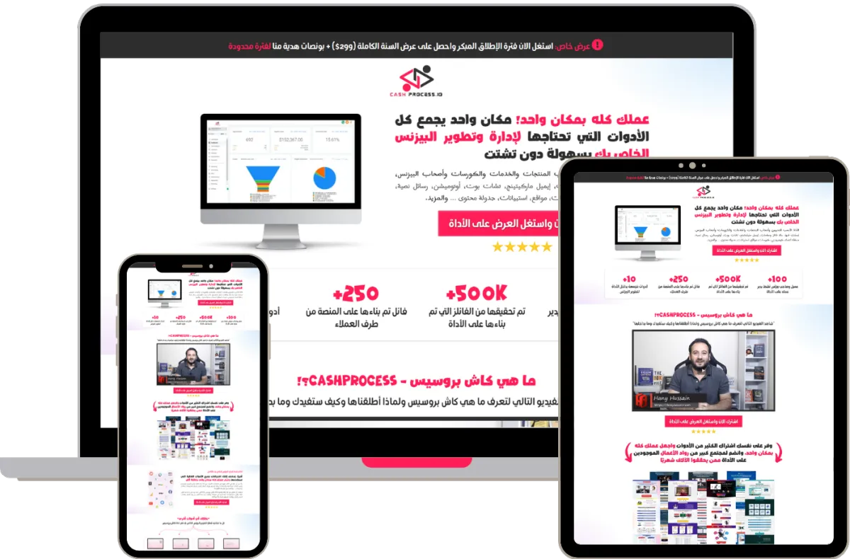 يُمكنك أن تستغن عن هذا كله وتشترك بأداة كاش بروسيس، الأداة التي ستجد بها كل ما تحتاجه لتطوير عملك والتي نستخدمها منذ فترة كبيرة في شركتنا، وكذلك دخل معنا الكثير من رواد الأعمال وأصحاب البيزنس أونلايم، وكانت تجربتهم ناجحة جدًا مع الأداة.