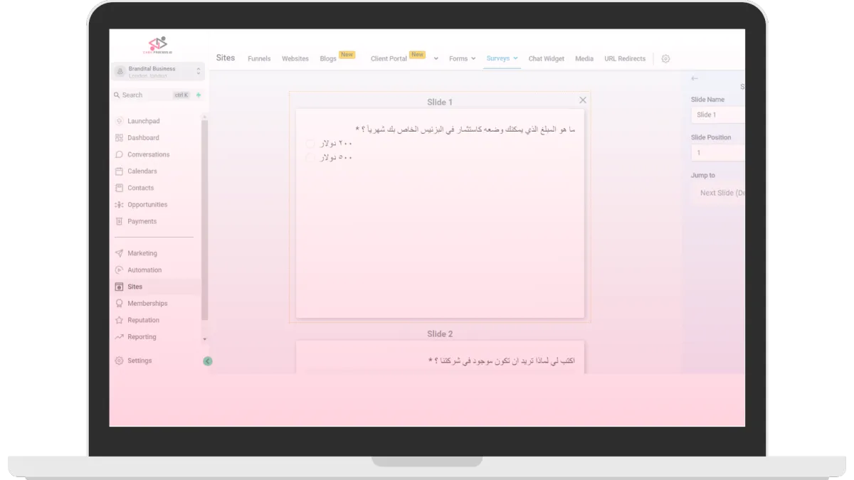 "يُمكنك إنشاء فورم لأخذ الداتا من العملاء بالإضافة لإمكانية إنشاء استبيانات مع العملاء"