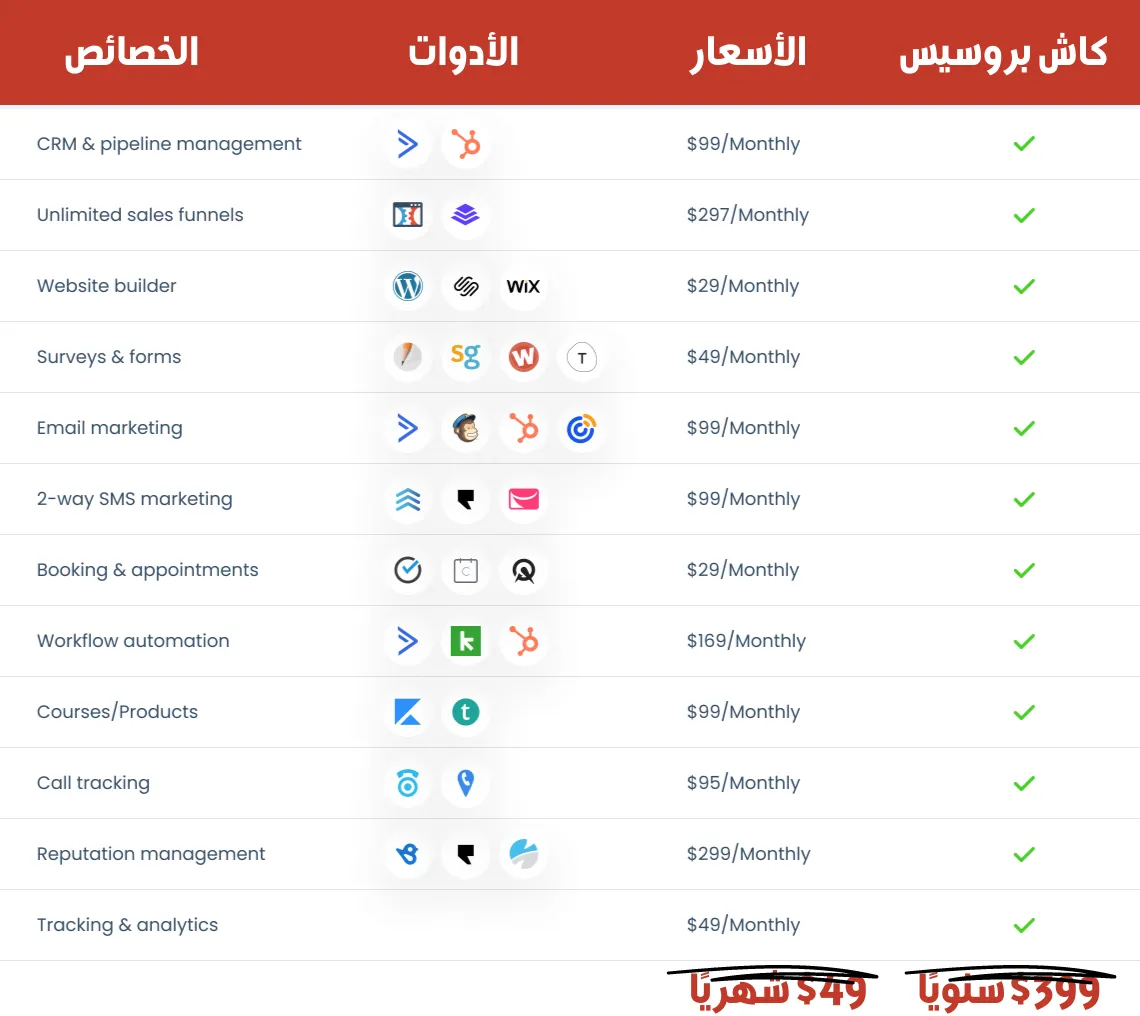 بدلًا من أن تدفع على الآلاف شهريًا على اشتراكات الأدوات بين أداة لبناء الفانلز وأخرى للإيميل ماركيتينج وأخرى للتشات مع العملاء والاجتماعات وإدارة المحتوى وإرسال الرسائل النصية وسيرفر للفيديوهات وكالندر واستبيانات .... وتتشتت بين كل هذه الأدوات!